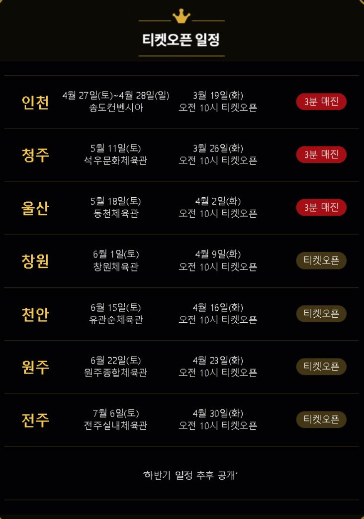 창원 | 6월 1일 (토) | 창원 체육관 | 4월 9일 (화) 오전 10시 |